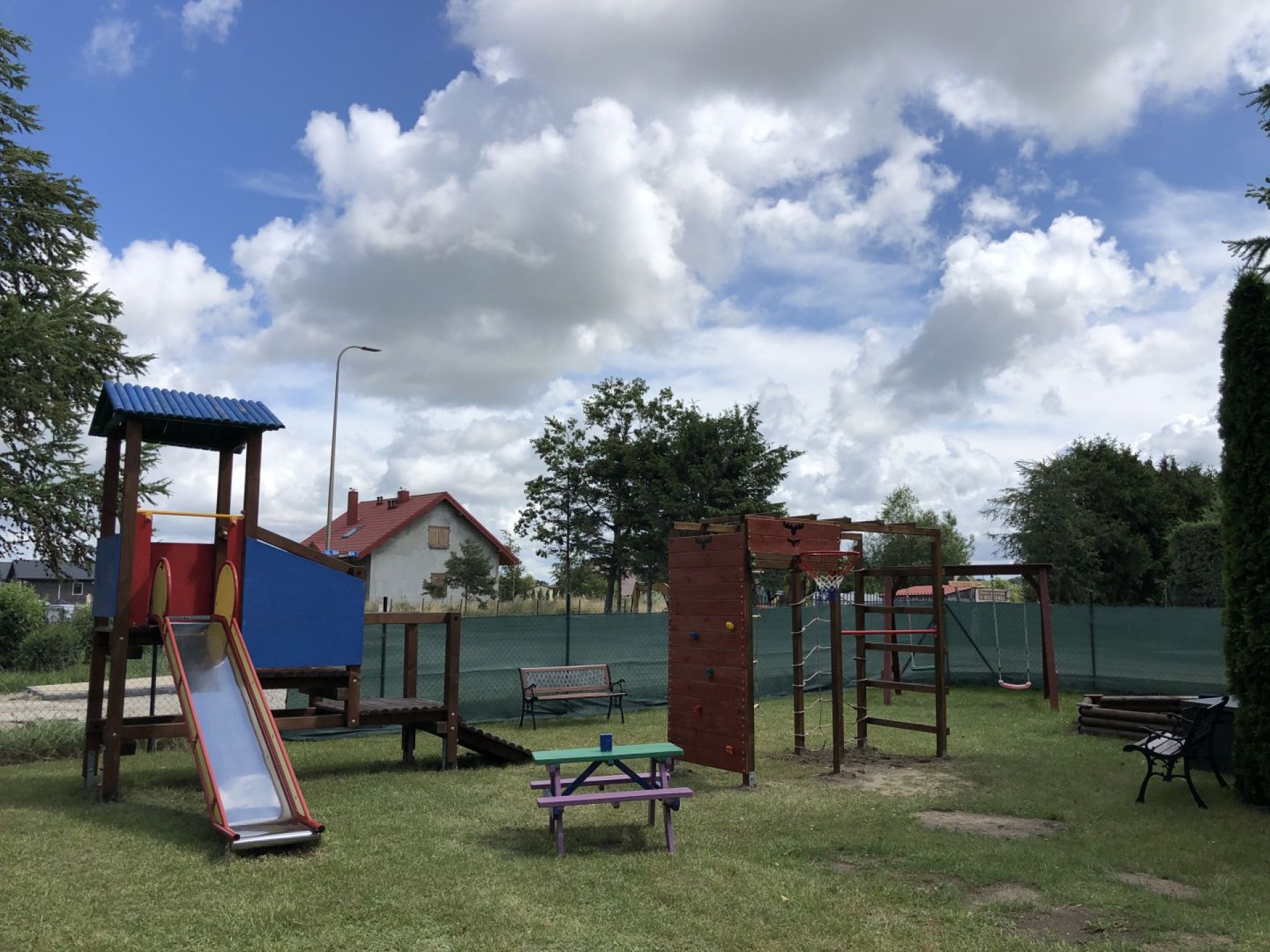 Teren jest oświetlony i ogrodzony z placem zabaw dla dzieci. Trampolina.