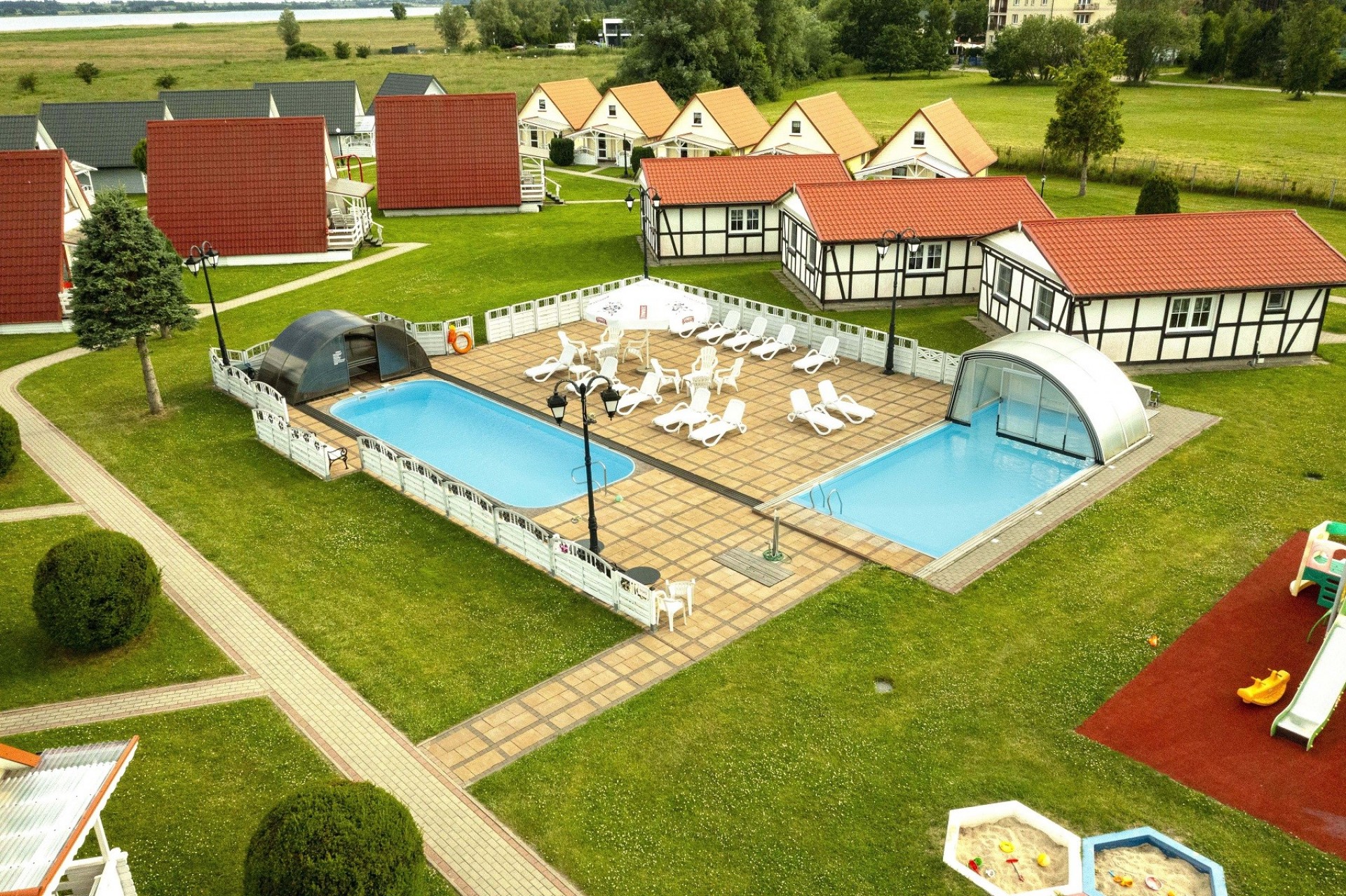 Teren ośrodka jest ogrodzony i bezpieczny. Na posesji znajduje się stołówka, sala bilardowa, świetlica z zabawkami dla dzieci i sala tenisa stołowego. W ogrodzie przygotowaliśmy dla Państwa boiska do gier zespołowych, parking oraz nowy plac zabaw dla maluchów. Gościom udostępniamy również baseny z podgrzewaną wodą.