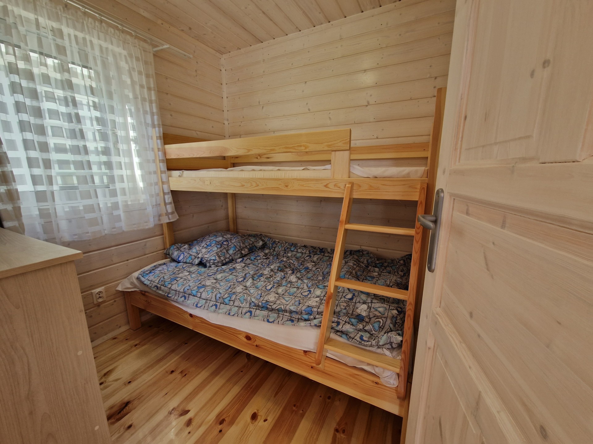 - sypialnia 2: szafa, łóżko piętrowe dla trzech osób, wieszak na kurtki