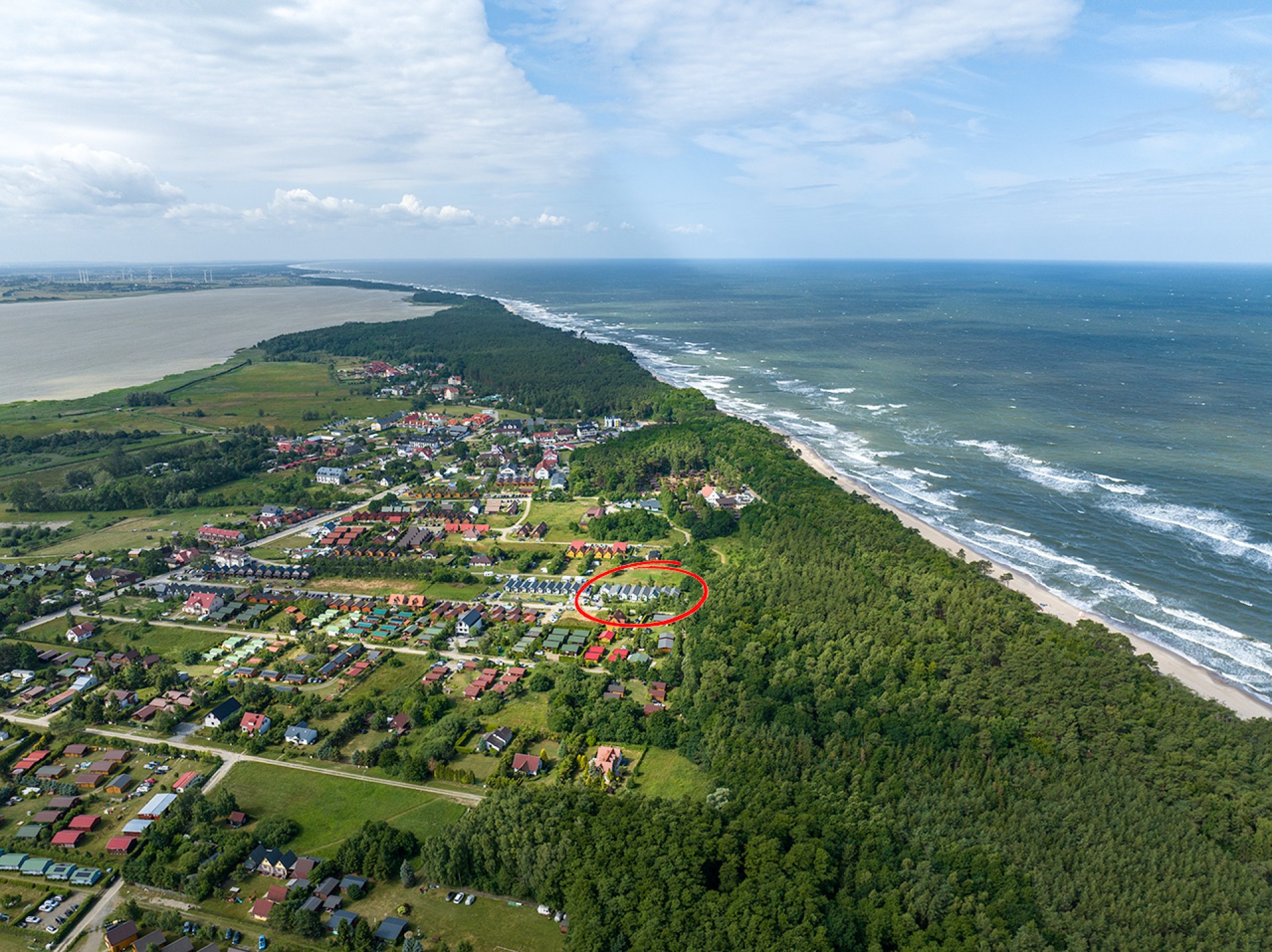 Domki znajdują się w pierwszej linii od morza, tuż przy lesie - 100m - 3 minuty spokojnym spacerem przez lasek. Bliżej być nie może!